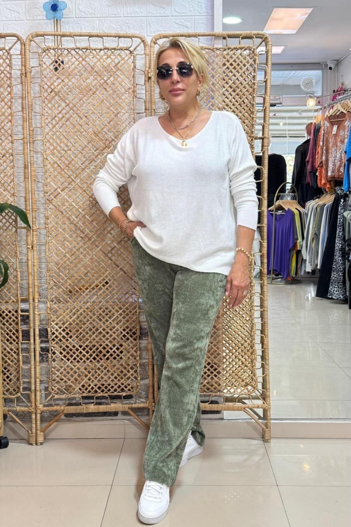 Bol Paça Kadife Pantolon Yeşil Bol Paça Kadife Pantolon Gri