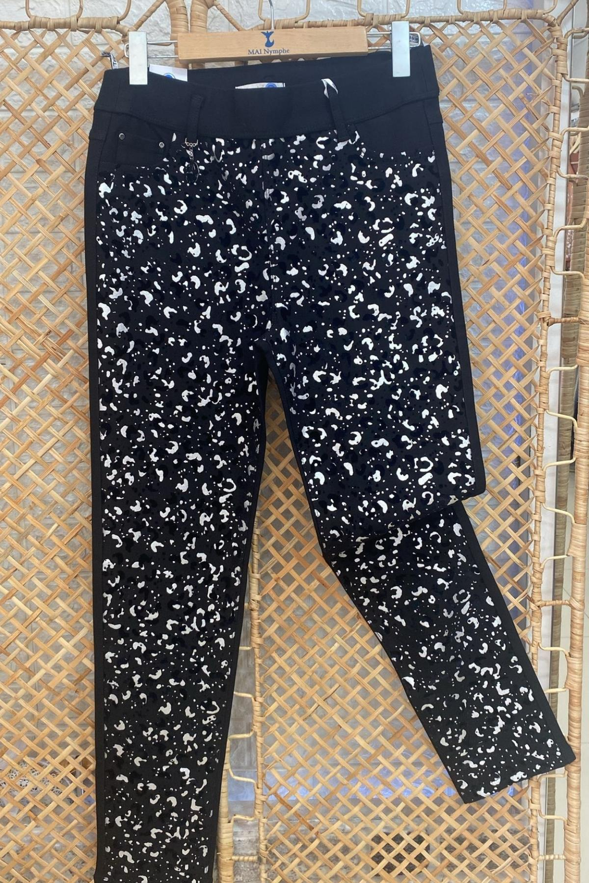Likralı, Beli Lastikli Önü Desenli Arkası Düz Punto Pantolon Siyah