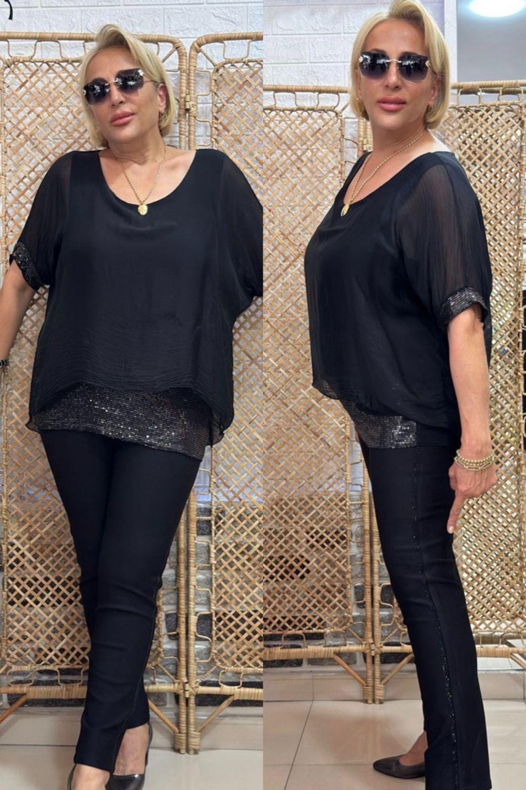 Yan Taş Şerit Detaylı, Likralı Punto Pantolon Siyah