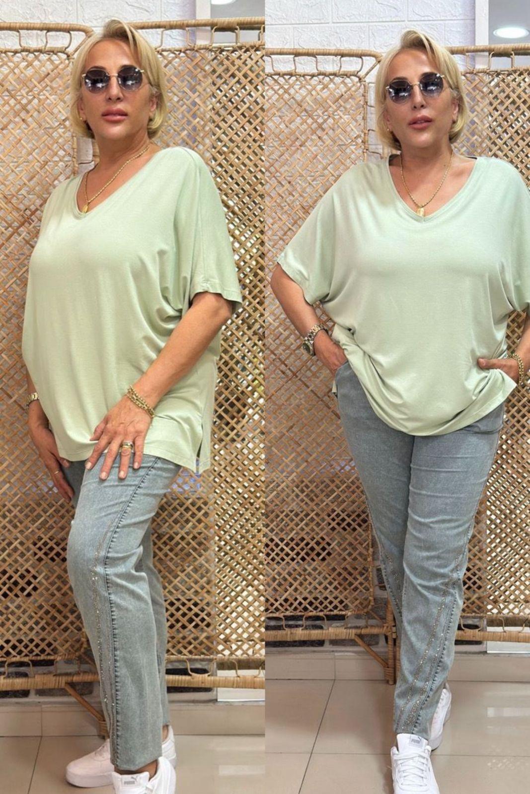 Yanları Taşlı, Likralı Pantolon Yeşil